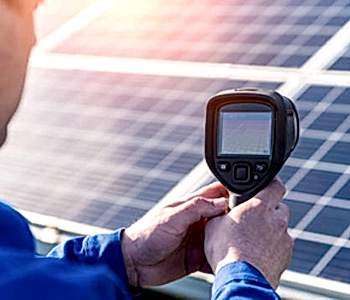 Termal kamera ile muayene, panel yüzeyinin sıcaklık dağılımını inceleyen ve meydana gelebilecek sorunları önceden tespit eden önemli bir yöntemdir. Bu muayene değişik dış etkenlerden kaynaklı olan veya panelin kendi içindeki önemli sıcak noktaları bulmak için kullanılmaktadır. Bu noktalar panelin normalden fazla ısınması durumunda meydana gelir ve bu sebepten dolayı güneş enerjisi üretiminde verim kaybı yaşanabilir.
